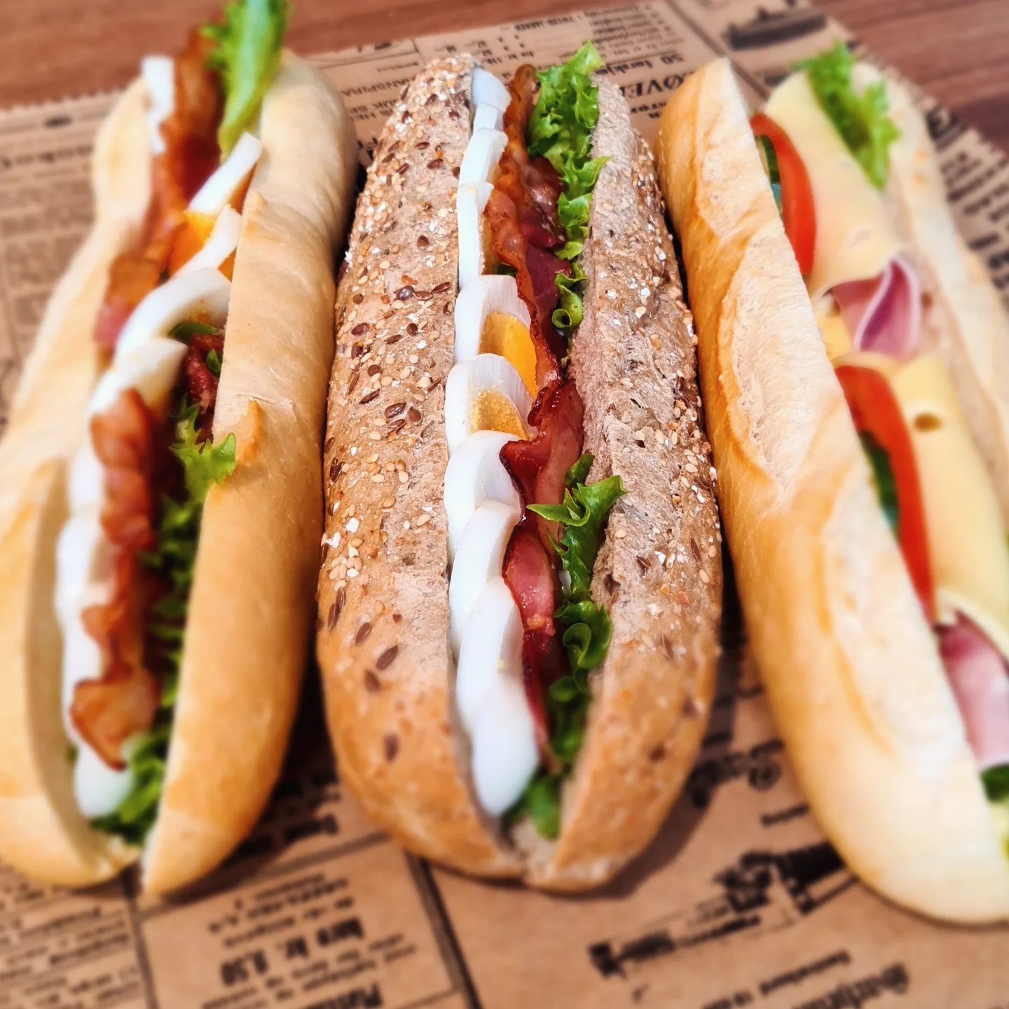 - Baguette, med ost og skinke/ egg og bacon / kylling / reker. Nysteikt og nysmurt.